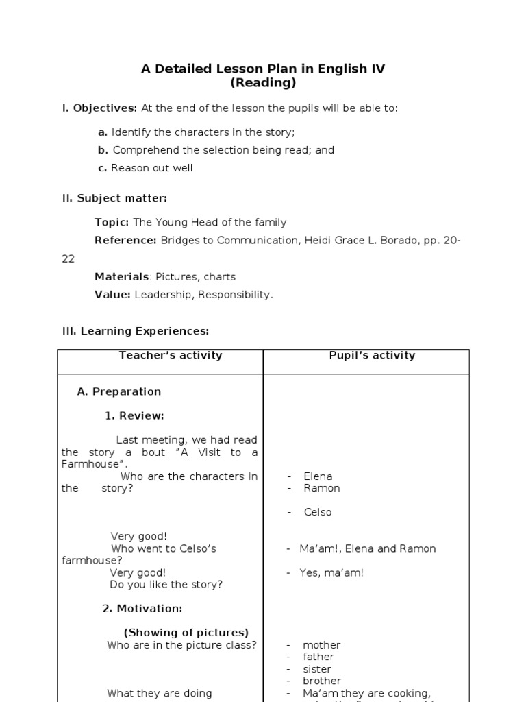 Detailed Lesson Plan in English Grade 4 Detailed Lesson Plan in