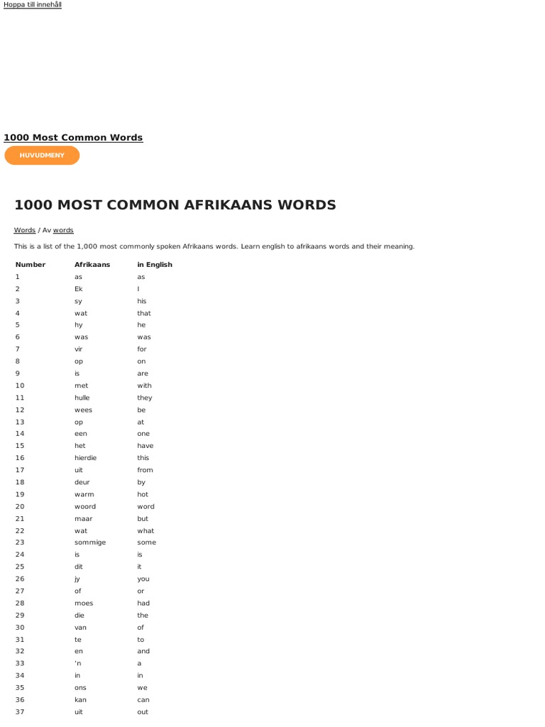 2 000 Most Common Afrikaans Words In English In 2020 Afrikaans Eroppa