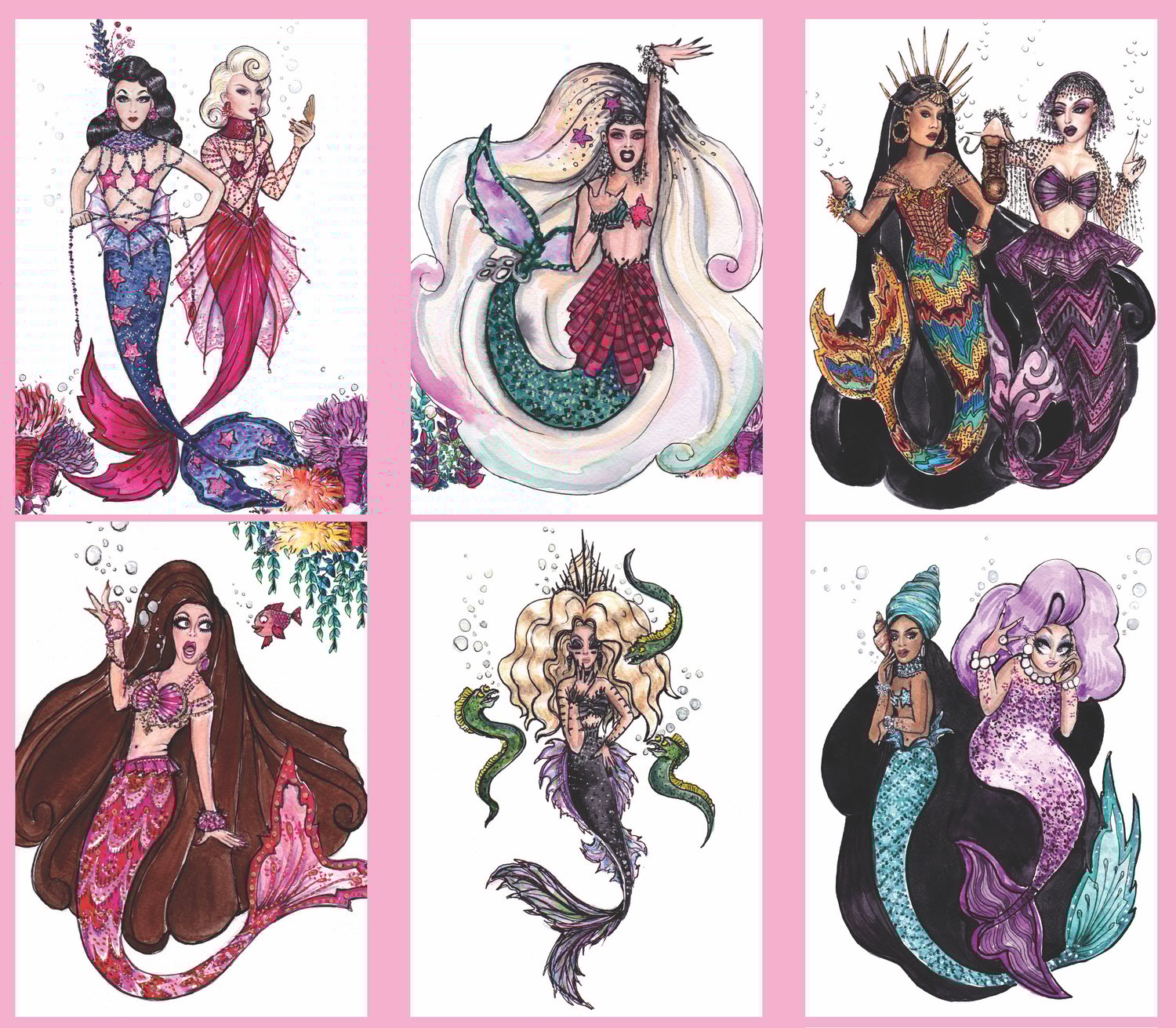 Bianca Del Rio, Adore Delano and Courtney Act mermaids. FanArt Adore
