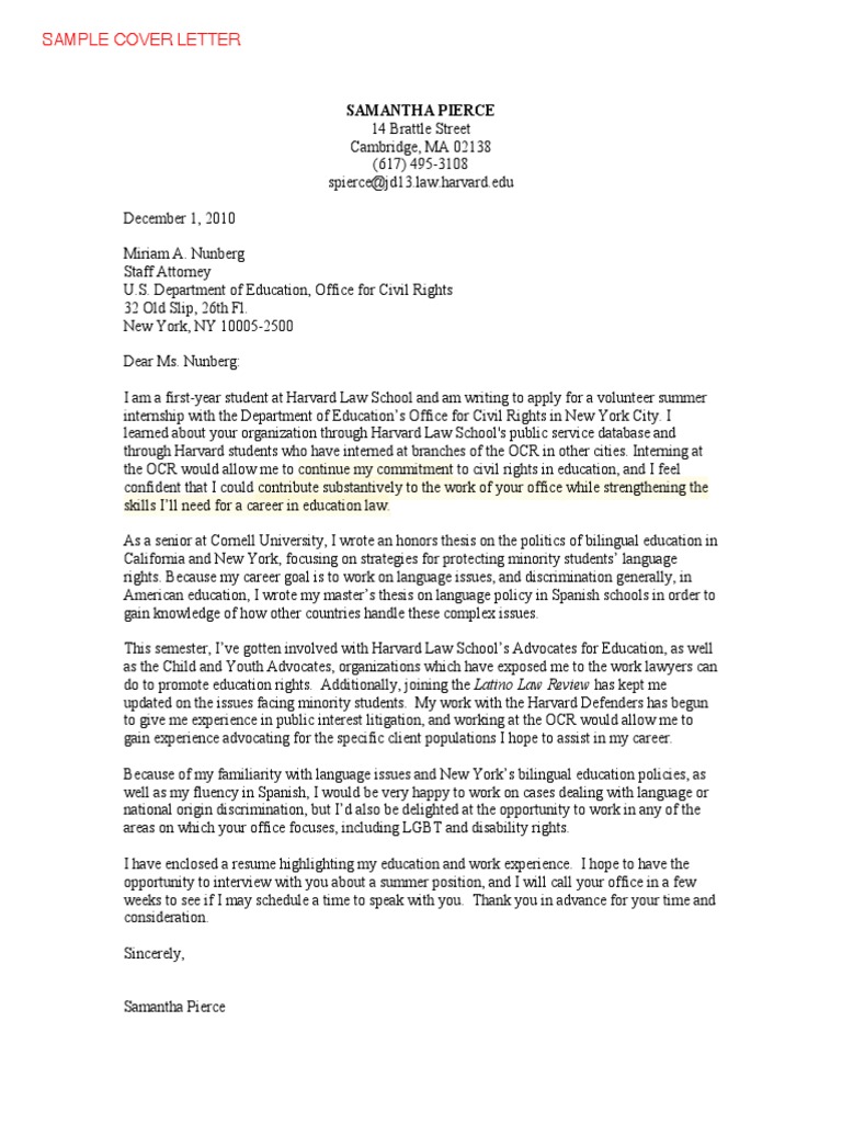 Harvard Cover Letter Samples PDF Internship Job Hunting