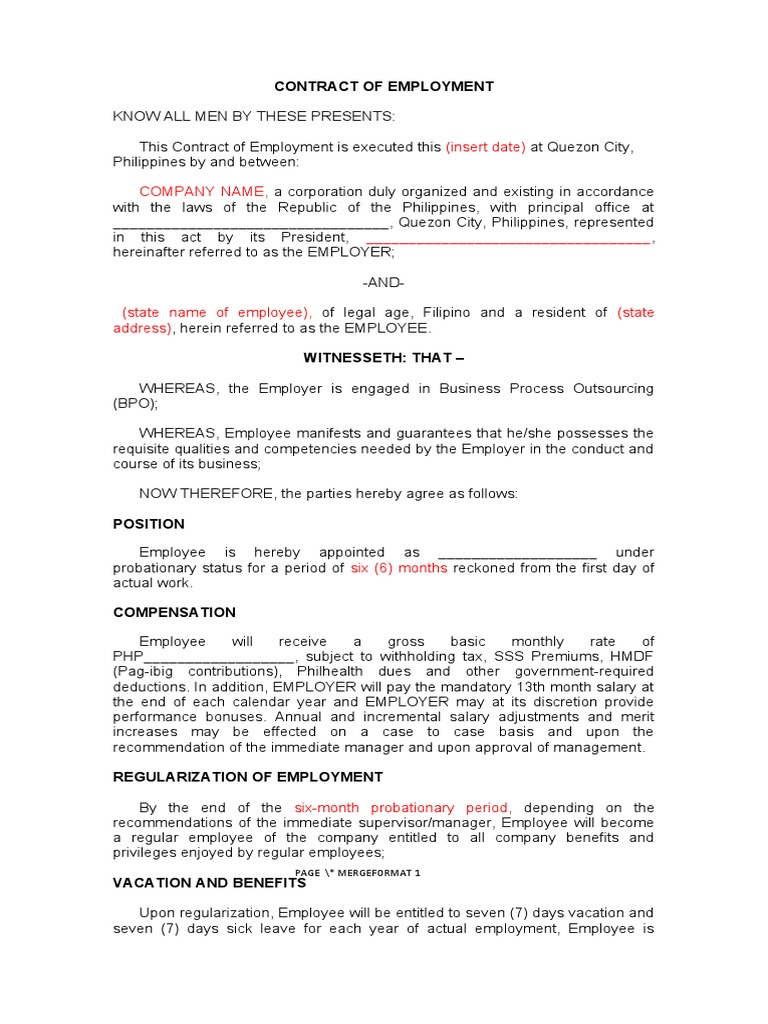 Contract of Employment Sample Philippines PDF Overtime Employment