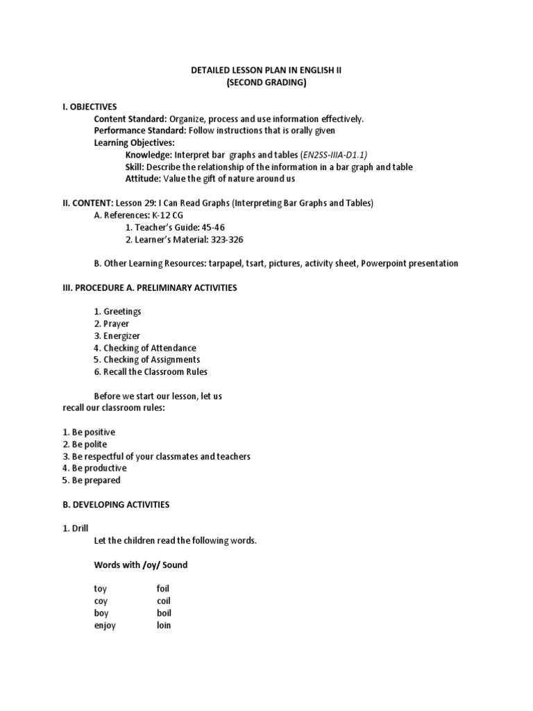 A Semidetailed Lesson Plan in English II ppt video online download